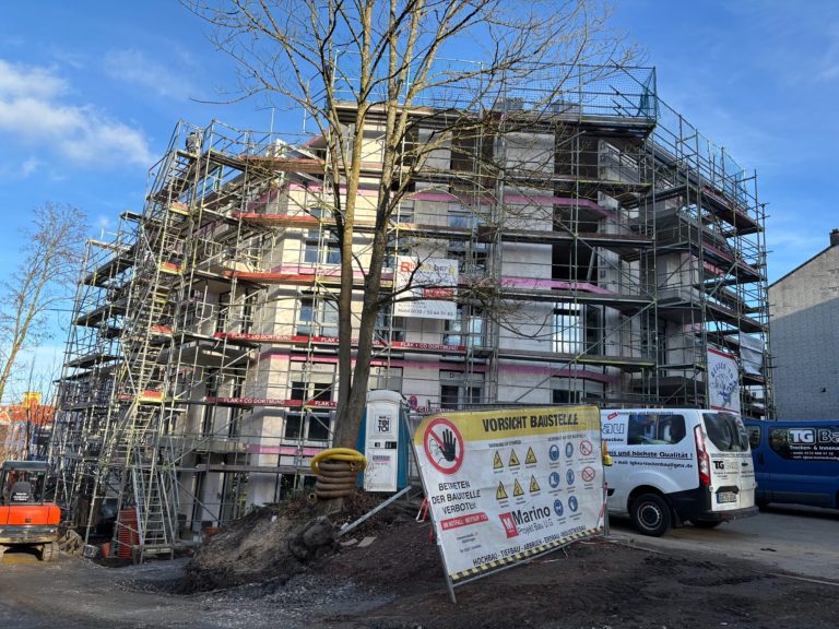 Hier entstehen bis August 2026 21 barrierefreie Wohnungen im Iserlohner Zentrum zwischen 50 und 65 m². Es handelt sich um öffentlich geförderten Wohnungsbau mit einem Mietpreis von 6,70€ / m² und Nebenkosten von 2,80 €/ m². Die Einkommensgrenze für Mieter beträgt 23.000 € jährlich. Wohnungsberechtigungsschein notwendig.